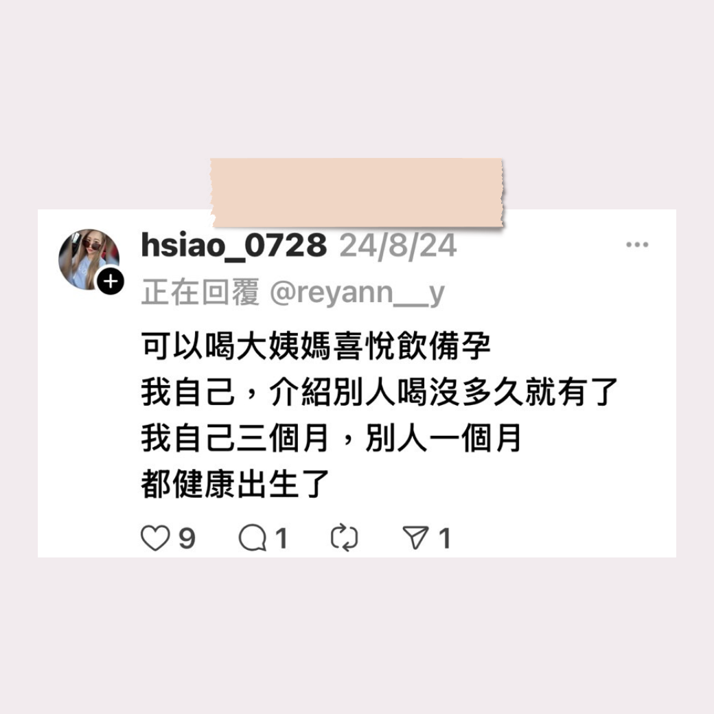 沒想到喝了一盒就懷上寶寶了!希望卸貨後還沒過期繼續喝!
