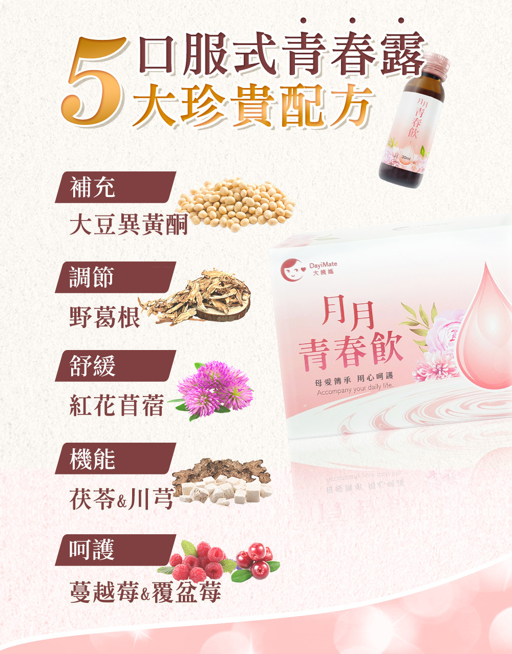 ✓ 波羅蜜白心 ✓ 大豆異黃酮 ✓ 茯苓川芎 ✓ 紅花苜蓿